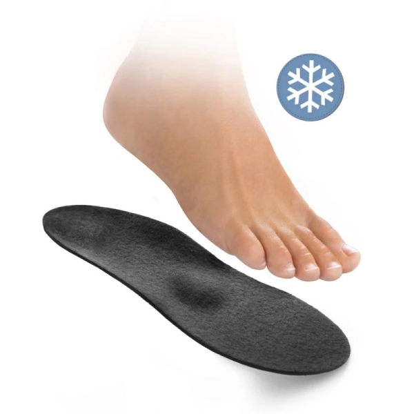Teplé ortopedické vložky pro podporu podélné a příčné klenby. Vložky napomáhají vyrovnávat chodidla do správného postavení, zvyšují pohodlí při chůzi a udržují nohy v teple.